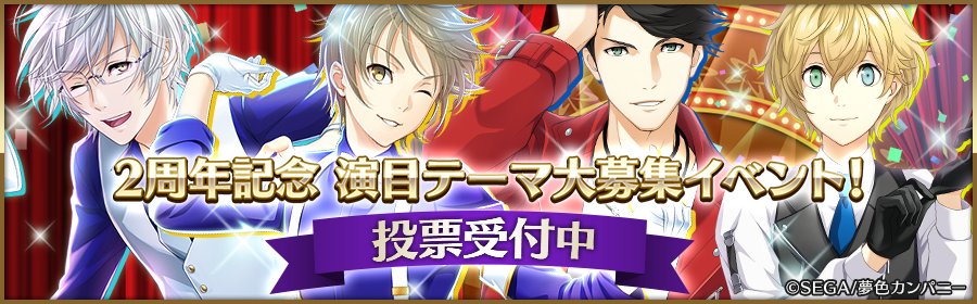 【演目テーマ大募集イベント!決選投票実施中!】皆さまにいただいた「夢色カンパニーとジェネシスに今後公演してほしい演目」を夢色キャストチームで選考いたしました♪お好きな演目にご投票ください♪10/31(火)13:59まで ycast.sega-net.com/news_detail01/… #夢キャス