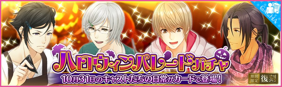 【お知らせ】キャスト達とハロウィンを楽しもう♪「ハロウィンパレードガチャ」復刻!プレイすればするだけ残っているキャストの出現確率がアップ♪一定回数ガチャをプレイすると「~10月31日~」キャストが必ず出現します! ycast.sega-net.com/news_detail01/… #夢キャス