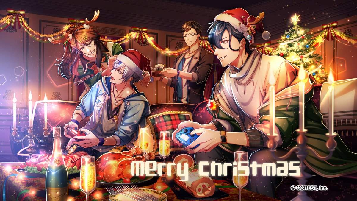 クリスマスパーティを楽しむ、エルフェン王子&テオドール王子&ドライ王子&マーチア王子のイラストをお届け🌟