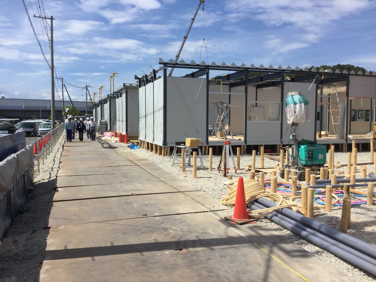 40世帯分の仮設住宅が、8月入っての着手でもうここまで。月内完成9月半ば入居予定です。 以前から存じ上げている婦人部長のご厚意でご自宅の土石流入状況と貴重な3日目のドローン上空撮影写真を!地域の二世代を育てた幼稚園、一階がこの状態、三階建てでの復興目指す園長さん、応援