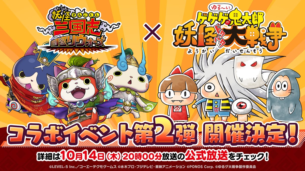 10/15(金)より「ゆるゲゲ」コラボ第2弾を開催!10/14(木)20時からはコラボ記念放送を配信します!2タイトルのキャンペーン情報を大紹介!今回の宝珠プレゼント企画では、配信を見ていれば当てられるWアップチャンスがあるとか!ぜひリアルタイムでご視聴ください!#妖怪三国志 youtube.com/watch?v=0tIrGQ…