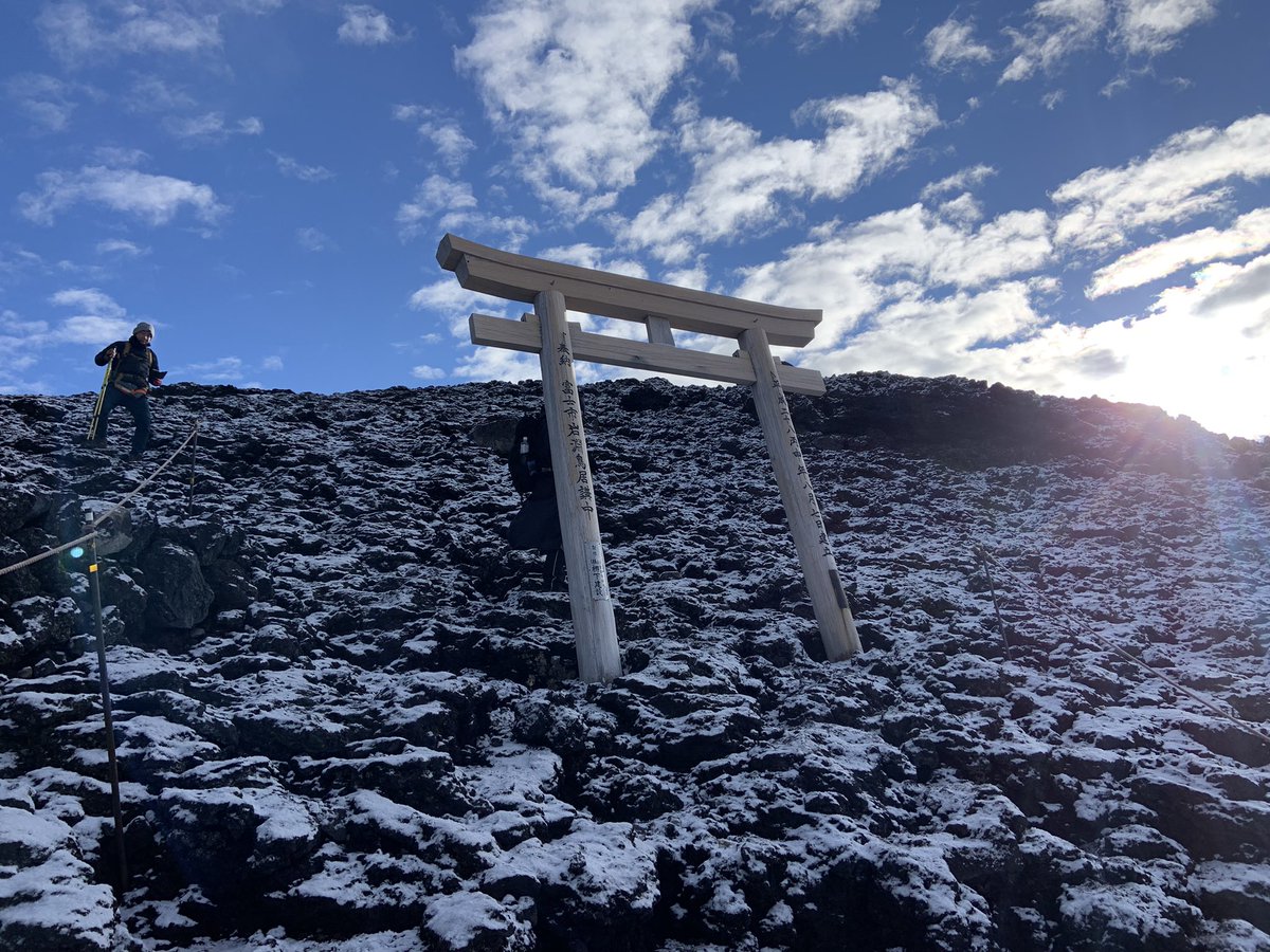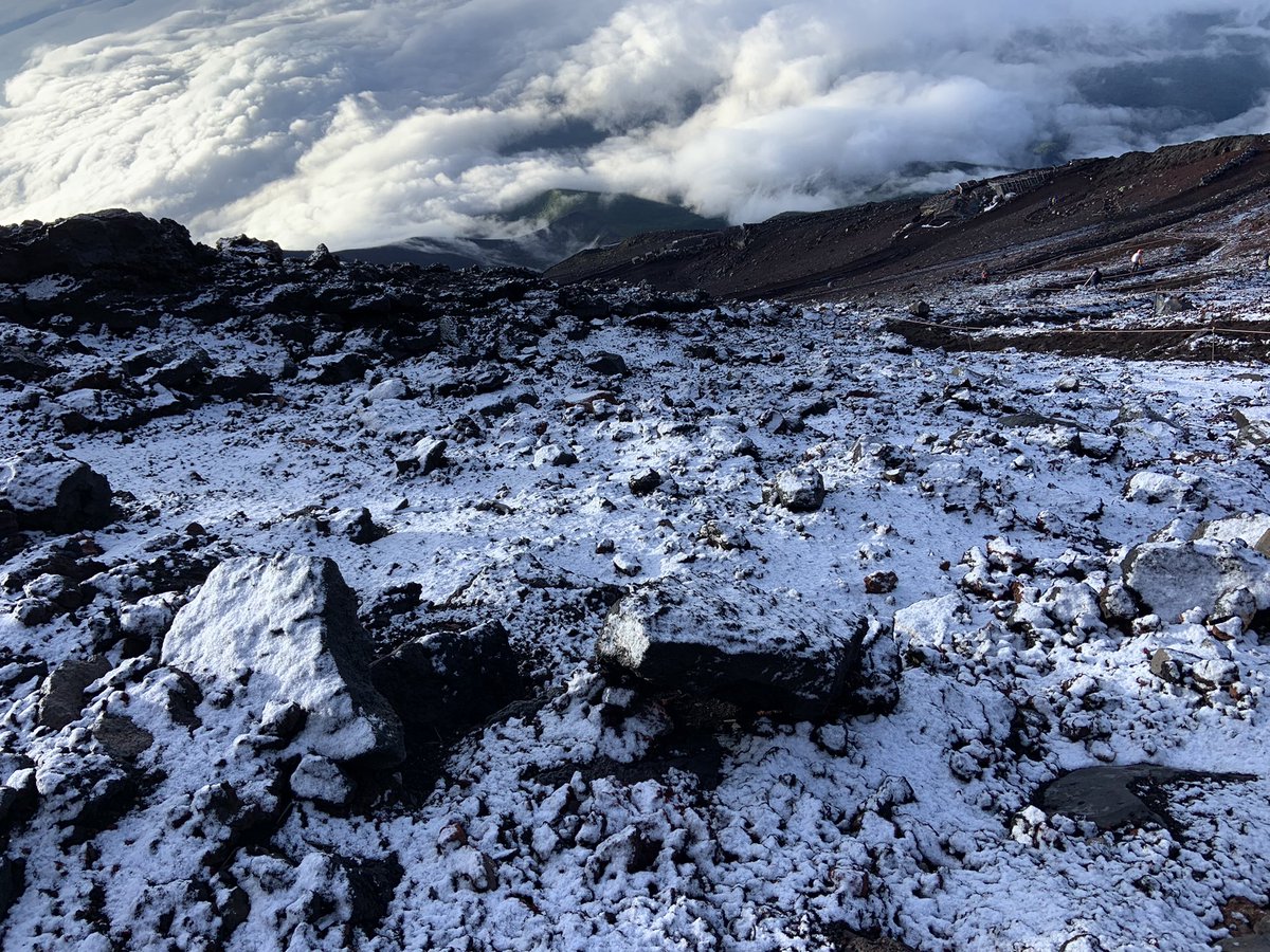9/6 まさかのシーズン終わりに雪がふりました。富士宮口では全ての山小屋が閉まっています。静岡県側と山梨県側では状況が異なりますので、ご注意ください。#富士山 #富士宮口