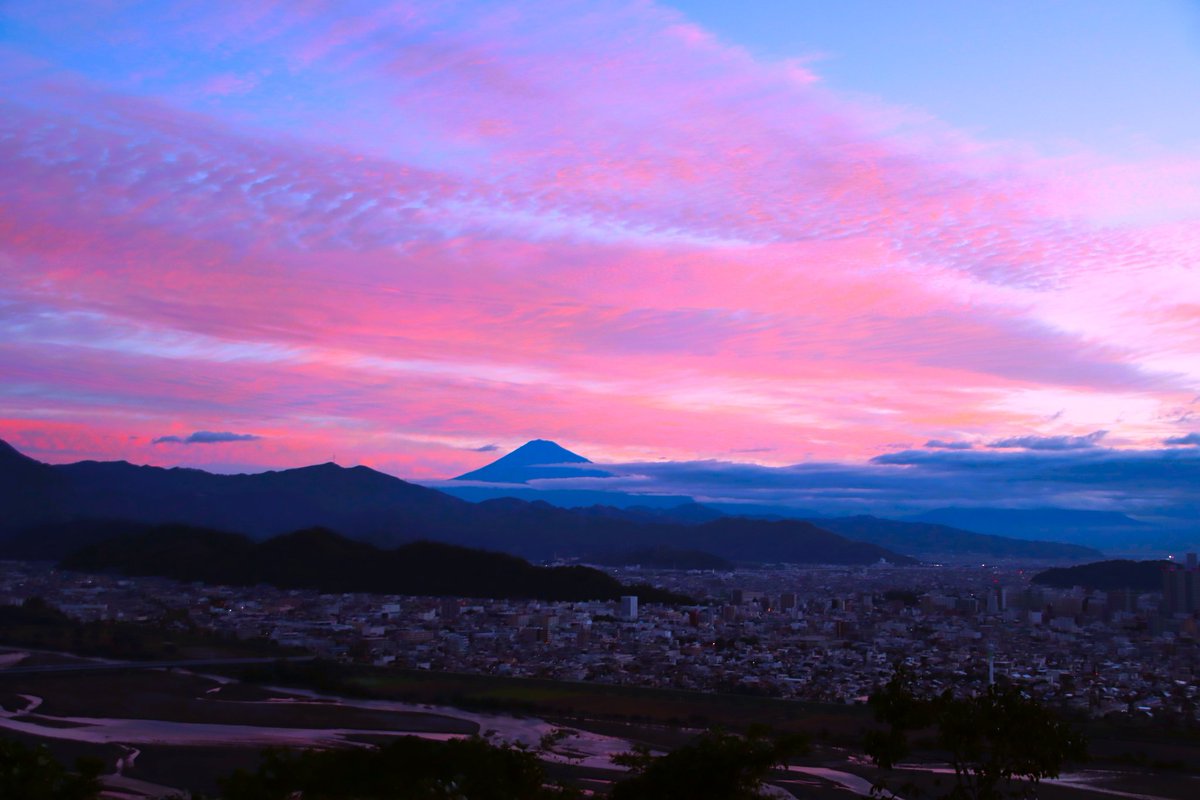 夕暮れの光に色付く紅葉と富士山がまるで絵画の様な美しさだ🍁