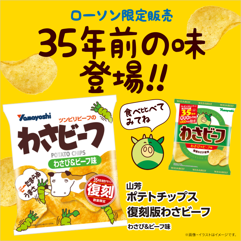 発売35周年記念!発売当初の味を再現した「ポテトチップス 復刻版わさビーフ」がローソン限定で発売♪今のとどっちが好きか食べ比べるもの楽しいです(^^)