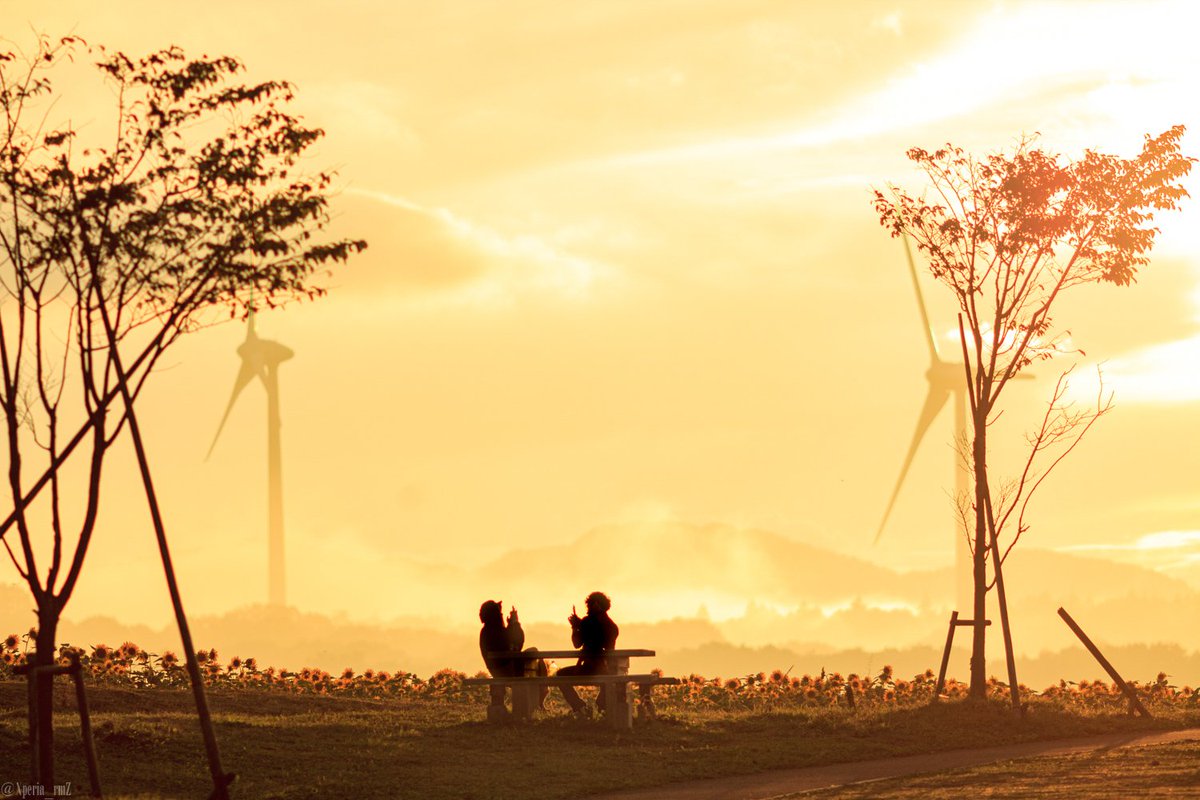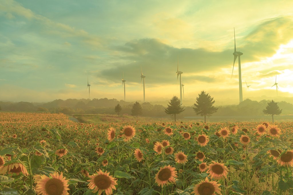福島県 #郡山#布引高原#向日葵 畑、今週の様子。 自分が行った時は日没直前、曇りの日。少し歩く度に光の加減が変わったり、モヤがかかってたりして幻想的だった。#毎日えりあ2019