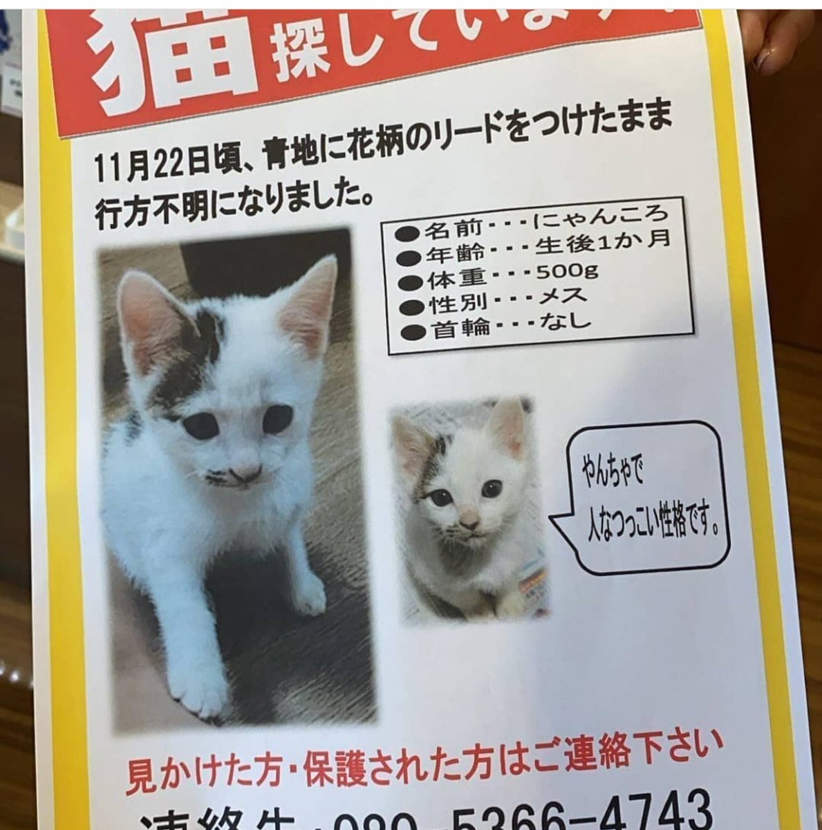 保護されました。お心当たりのある方はご連絡ください。