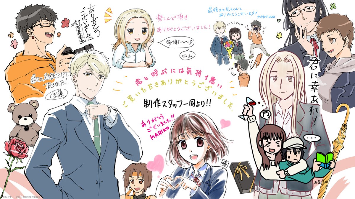作品を生み出してくれたアニメ制作チームからもお礼の寄せ描きイラストをお送りします。リプライして頂ければきっと作り手に届きますので、皆さまからの感想をお待ちしています!