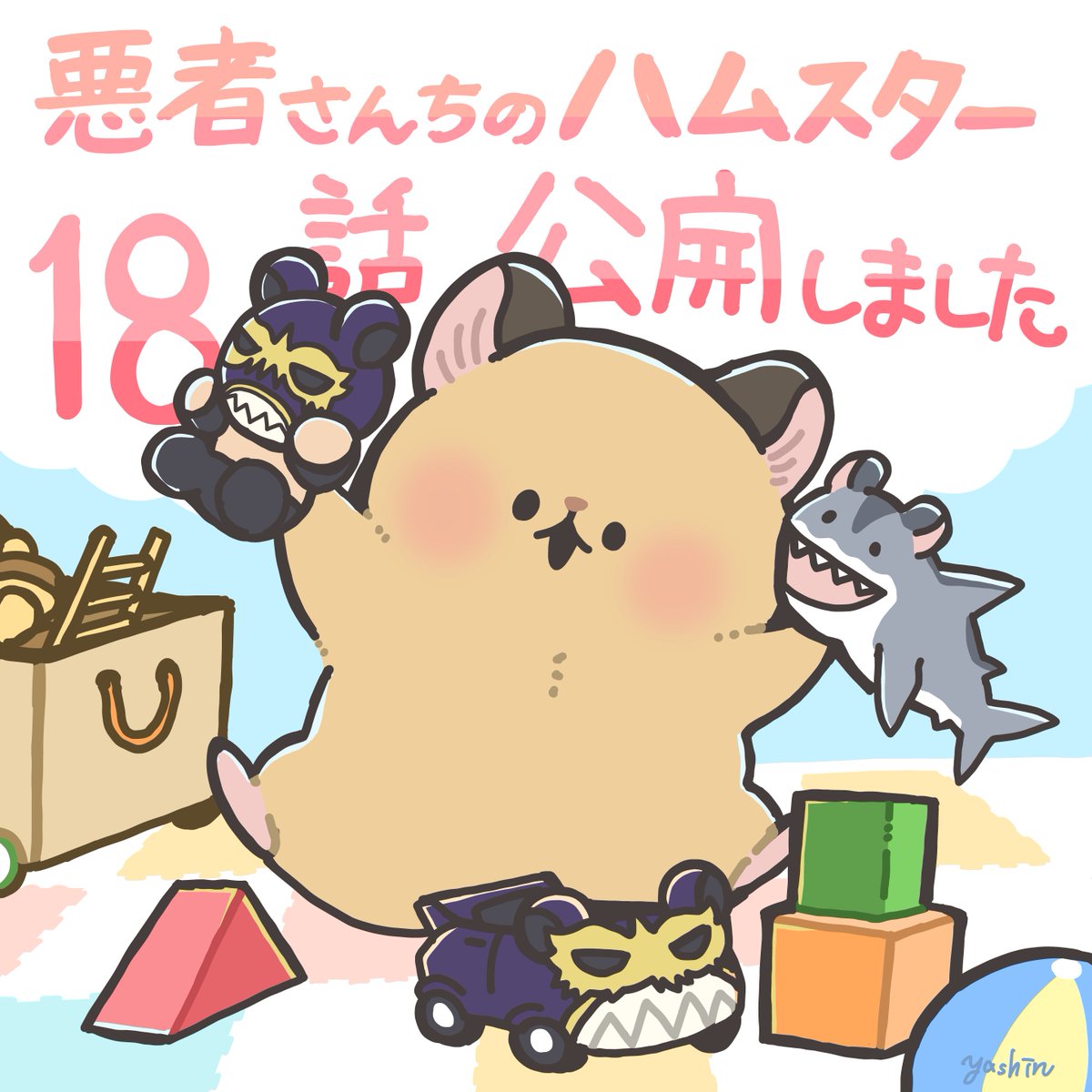 #悪者さんちのハムスター 18話が無料公開されました!おもちゃにはしゃぐオムちゃん(と金剛寺)のお話です🐹🐻