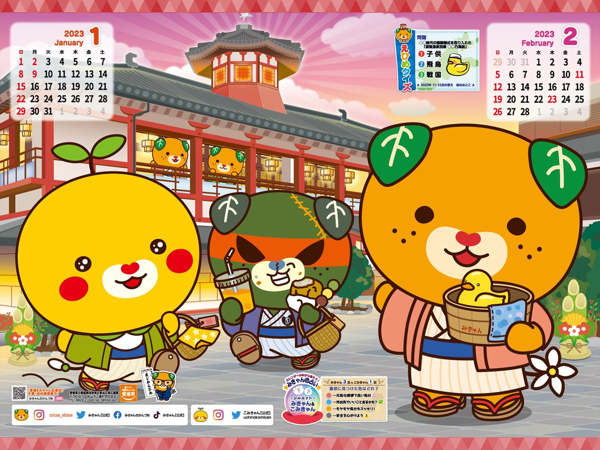 1月・2月のみきゃんカレンダーは道後♨️✨