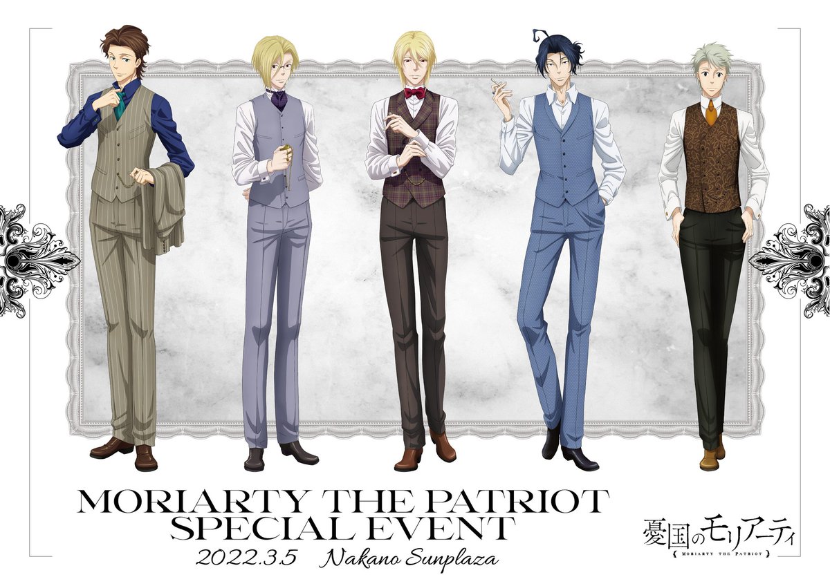 Moriarty the Patriot『#憂国のモリアーティ』Special Event อีเว้นท์พิเศษฉลองการออกอากาศของ OVA และการวางจำหน่าย Blu-ray & DVD จัดขึ้นในวันที่ 5 มีนาคม 2022 ณ Nakano Sunplaza Hall moriarty-anime.com/event🌹