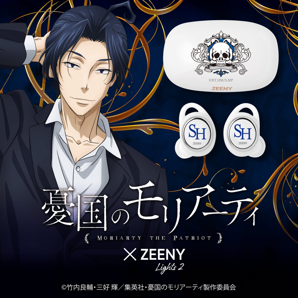 Moriarty the Patriot『#憂国のモリアーティ』ร่วมกับแบรนด์ Zeeny Lights2 ออกสินค้าหูฟังไร้สาย (Headphone) รุ่น William และ รุ่น Sherlock ในราคา 14,080 เยน (รวมภาษี) moriarty-anime.com/goods