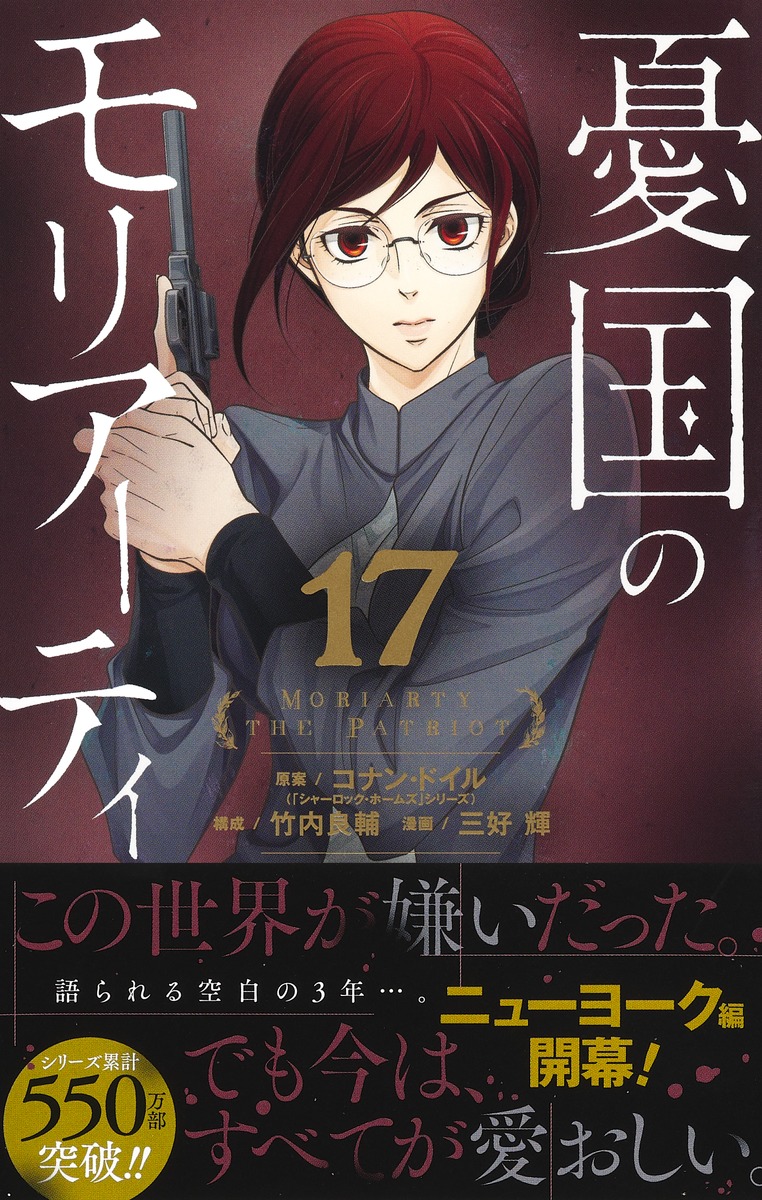 Moriarty the Patriot『#憂国のモリアーティ』ผลงานมังงะของอาจารย์ทาเคอุจิ เรียวสุเกะ (Takeuchi Ryosuke 竹内良輔) และวาดภาพประกอบโดยอาจารย์มิโยชิ ฮิคารุ (Miyoshi Hikaru 三好輝) ประกาศยอดวางจำหน่ายของมังงะทะลุ 5.5 ล้านเล่ม โดยมีการตีพิมพ์รวมเล่มทั้งหมด 17 เล่ม ณ ปัจจุบันครับー