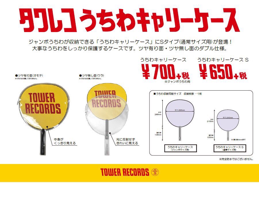 柄まで守れちゃう、うちわ用ビニール「タワレコ うちわ専用PP袋(10枚入)」と、大人気「うちわキャリーケース」と比べてワンサイズ小さい「タワレコ うちわキャリーケース S」販売中!人気爆発中💥 #推しグッズ (遊ホ)
