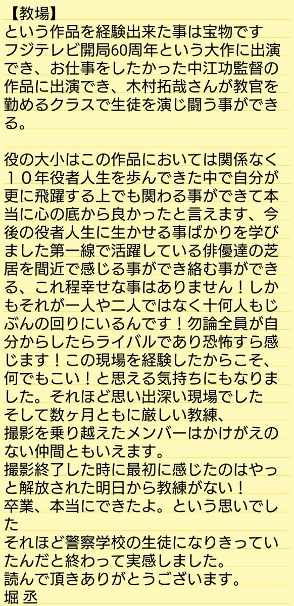 本日21:00からのフジテレビ開局60周年記念 新春SPドラマ『教場』の後編に出演させていただきます!時間が経った今でも忘れられないほど凄まじいエネルギーに溢れた現場でした。携わらせていただけて光栄です。是非ご覧ください! #教場