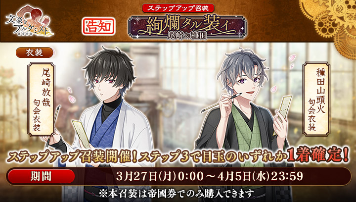 3月27日(月)0:00より、ステップアップ召装『絢爛タル装イ 尾崎&種田』が登場!