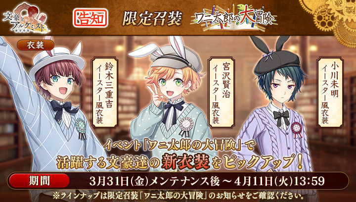 3月31日(金)メンテナンス後より、限定召装「ワニ太郎の大冒険」が登場!