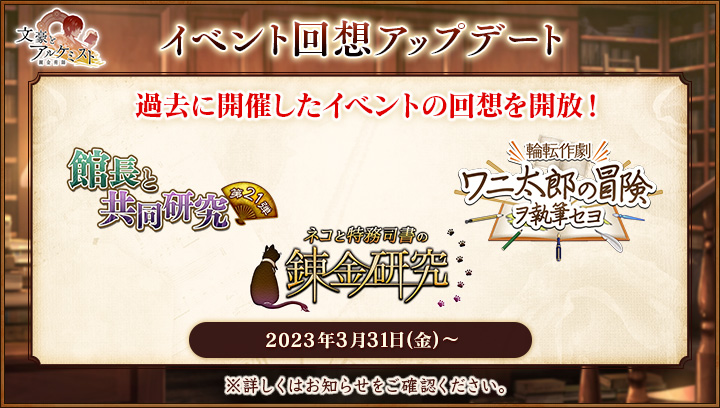 このアップデートでは、過去に開催した一部イベントの回想を特務司書の皆様が閲覧できるようになります。