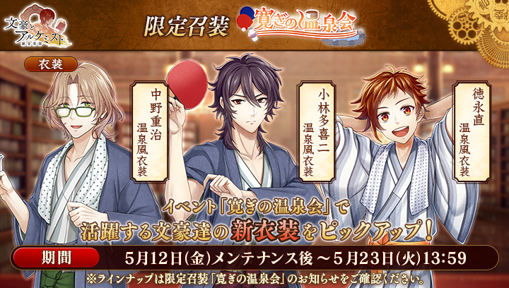 5月12日(金)メンテナンス後より、限定召装「寛ぎの温泉会」が登場!