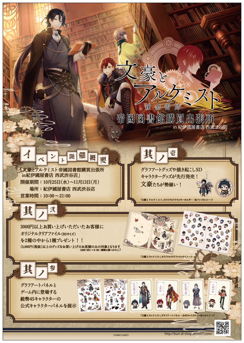 【イベントSP】「文豪とアルケミスト 帝國図書館購買出張所 in 紀伊國屋書店 西武渋谷店」に沢山リツイートやいいねをつけて下さり、ありがとうございます☆グッズの内容について続報が飛び込んできましたよ!いますぐチェック!!goo.gl/J5h76t #文アル