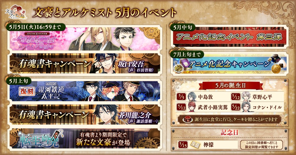 本年も相変わらず、5周年を迎えた「文豪とアルケミスト」を