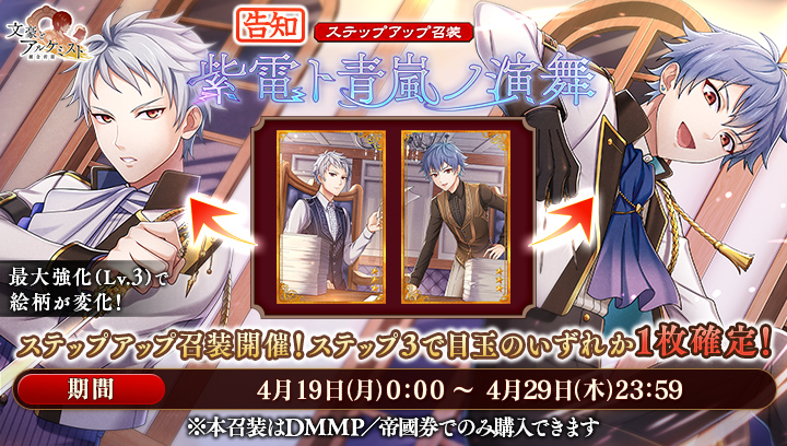 4月19日(日)0:00より、ステップアップ召装『紫電ト青嵐ノ演舞』が登場!