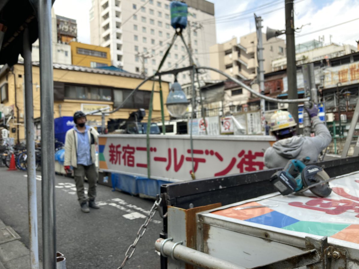 新宿ゴールデン街のお馴染みの看板が撤去されました。立ち合いましたが、寂しいよーー❣️