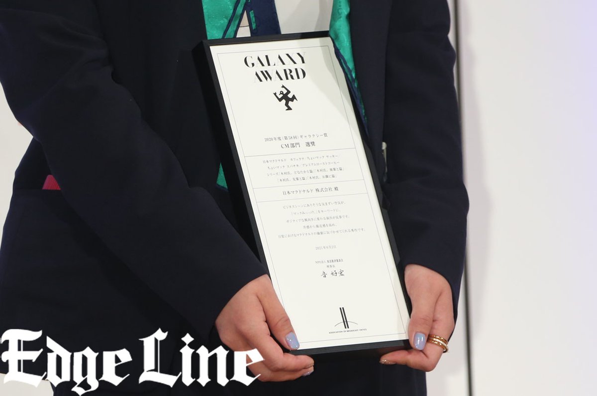 木村拓哉出演の日本マクドナルドのCMシリーズが「第58回ギャラクシー賞」CM部門で選奨受賞!「窮地を脱する展開が楽しい」 edgeline-tokyo.com/entertainment/… #日本マクドナルド #木村拓哉