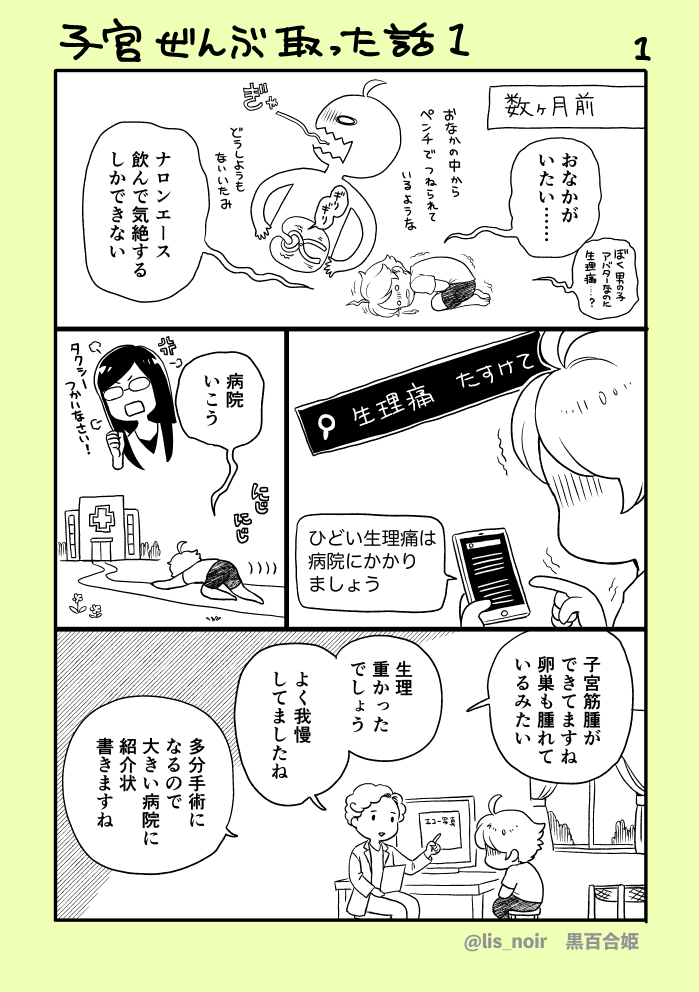 7月に子宮全摘で入院してた件、絵日記にしました。 生理痛って生理終わっちゃうと「ま、いっか」になるから病院行くほどじゃない気分になっちゃうんだけど、ちゃんと億劫がらずに病院行った方がいいよね! なにごとも初期治療が大事っぽいよ。