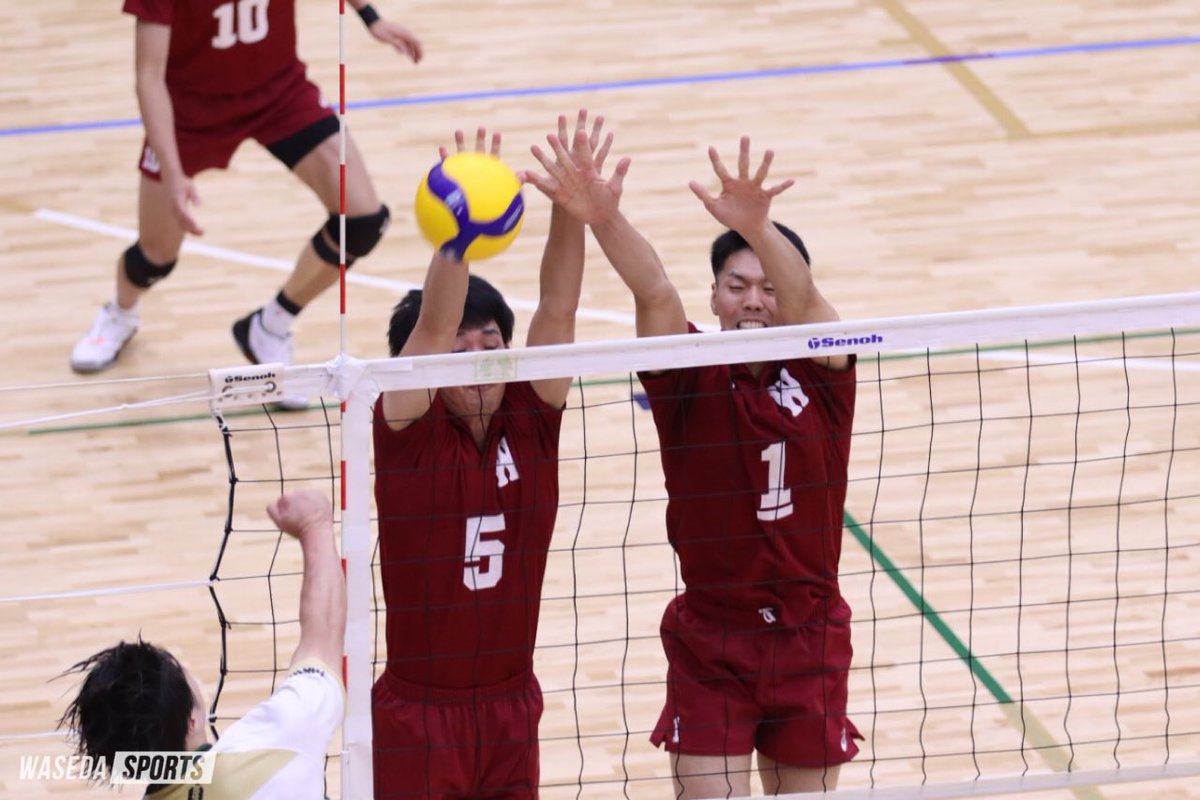 [男子バレーボール]天皇杯関東ブロックラウンド ○早大 2ー0国際武道大(25-23、25-12) 接戦の第1セットを辛くも取りきり、勢いそのまま2セット目を大差で連取。天皇杯本戦への切符を掴んだ! #sousupovolleyball #早稲田バレー