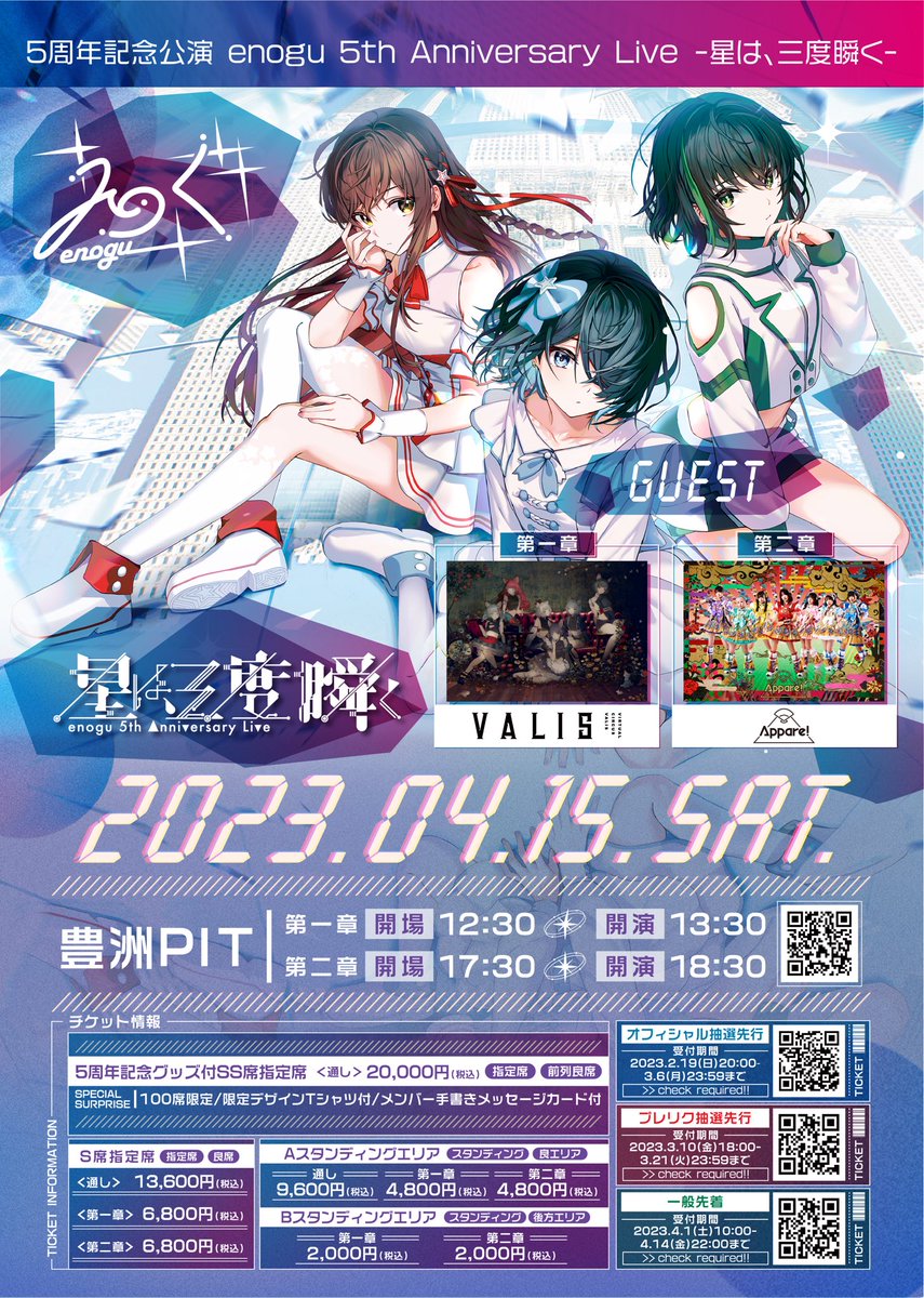 4月15日(土)豊洲PITで開催する #えのぐ 5周年記念ライブ「enogu 5th Anniversary Live -星は、三度瞬く-」ゲスト出演者様が決定!