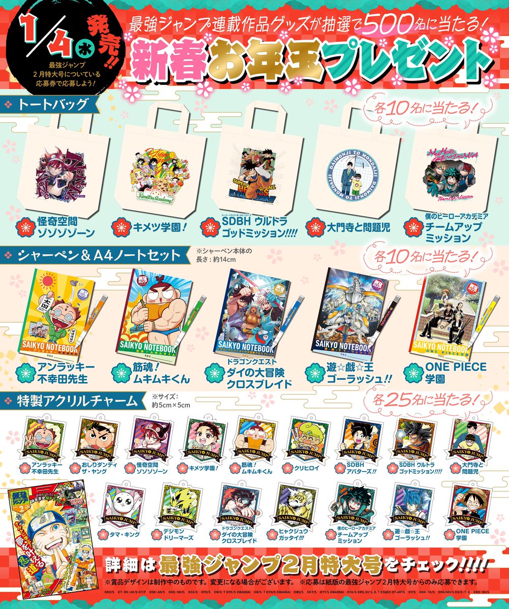 お正月企画として、1/4(水)発売の最強ジャンプ2月特大号では、抽選で当たる「新春お年玉プレゼント🧧」を実施!