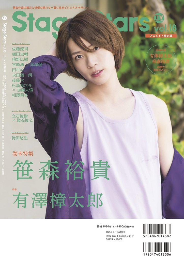 アニメイトさんで通常版をお買い求めいただくと、#有澤樟太郎 さん(@shotaro_arsw)の生写真+#笹森裕貴 さん(@0621Hiro0621)の生写真の計2枚セットをプレゼント。なお、数には限りがありますのでお早めに。アニメイトオンラインのご予約はanimate-onlineshop.jp/sphone/pn/%E3%… twitter.com/TVguidePERSON/…