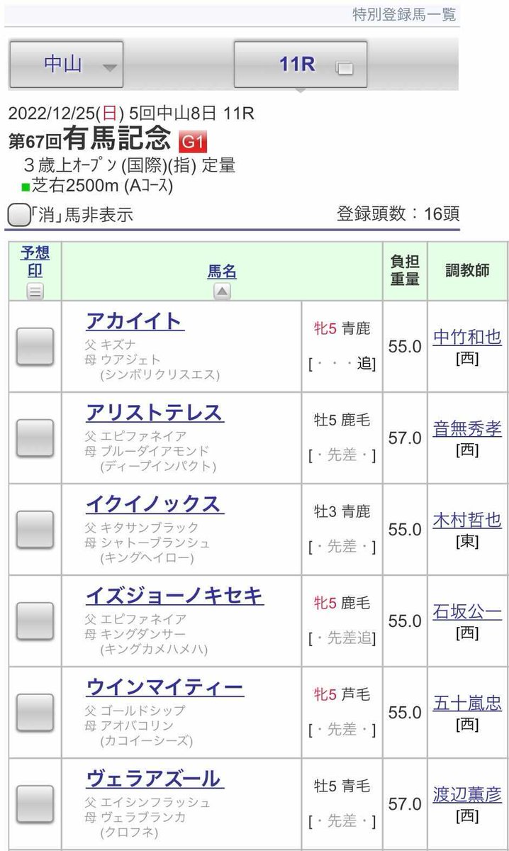 フルゲート16頭に対し登録も16頭=除外はありません。 twitter.com/netkeiba/statu…