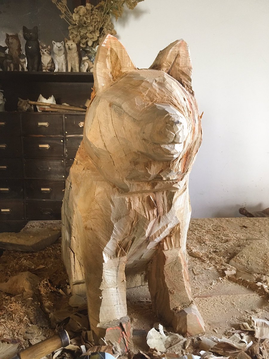 30キロ以内でないと運送が少し問題が出でくるので、あと2キロダイエットというもう1つの使命も。。。#木彫りのムーコ