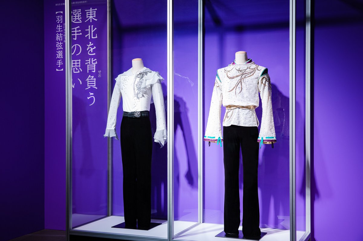 左は、 #羽生結弦 選手が復興支援ソング「花は咲く」の演技で着用した衣装。右は、「SEIMEI」の演技で着用した衣装です。
