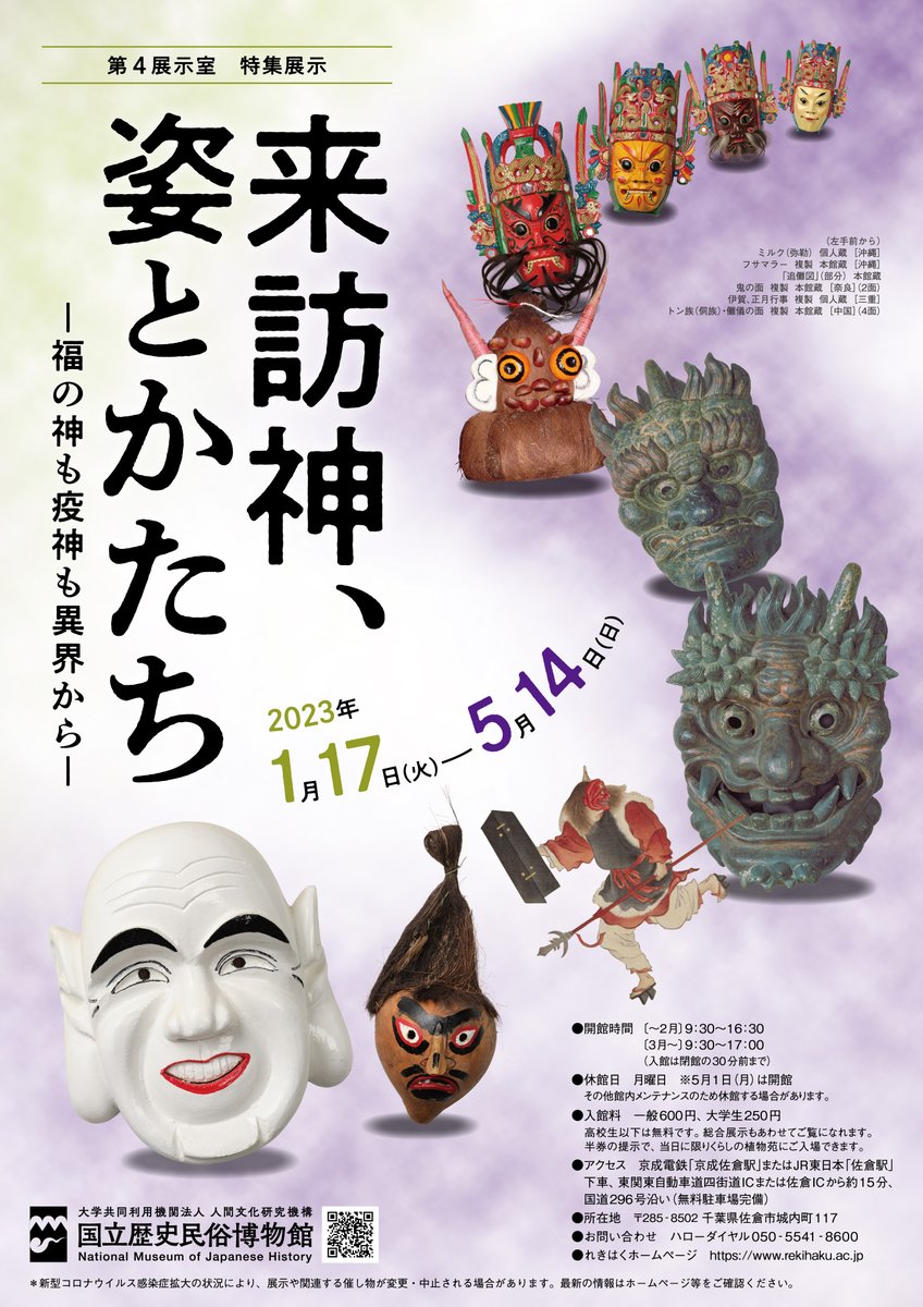 1月17日(火)から5月14日(日)まで、第4展示室にて特集展示「#来訪神、姿とかたち-福の神も疫神も異界から-」を開催します。日本各地の神霊の姿と信仰の諸相について、外来文化の影響も踏まえて紹介します。