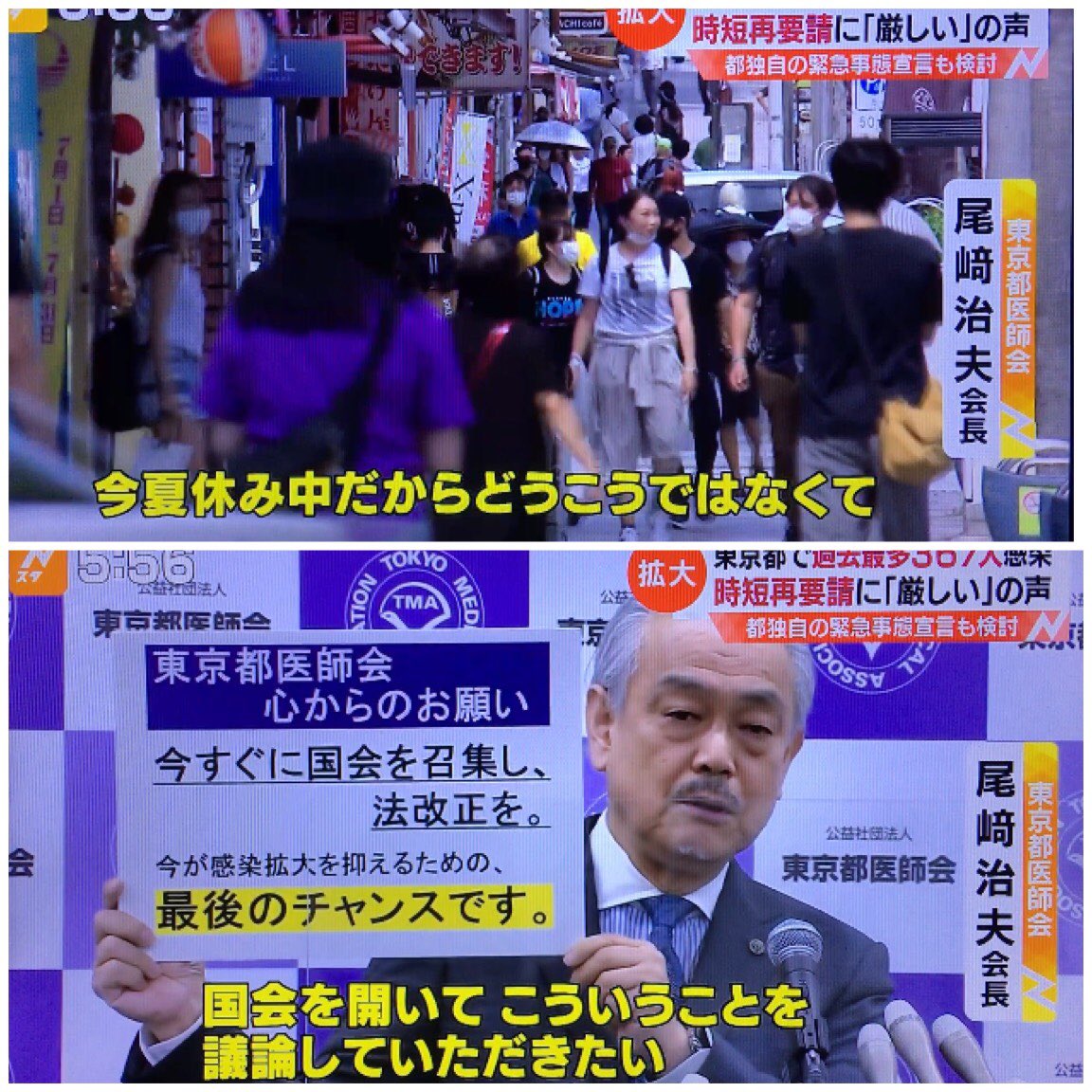 東京都医師会 尾崎治夫会長が、ただちに国会の招集を要請!! 「法的な拘束力のある休業要請を。それには休業補償をつける。このためには法改正が必要」 さらに、都内数ヶ所に合計3000床程度のコロナ専用病院の設置を求める! 与党は国会招集に応じろ!💢 #東京都医師会 #今すぐ国会の招集を