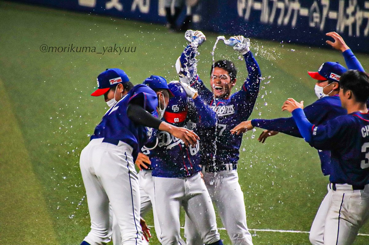 【#一緒にどらほー】#村神様 にリベンジ成功! #大野雄大 投手と歓喜の共有🎉
