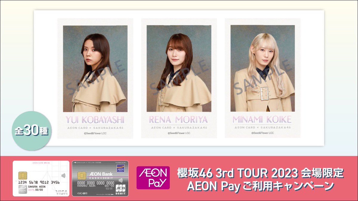 本日4月20日(木)開催の櫻坂46「3rd TOUR 2023」愛知公演にてチェキ風フォトカードがもらえる「イオンカード(櫻坂46)申込キャンペーン」が実施されています💳🌸