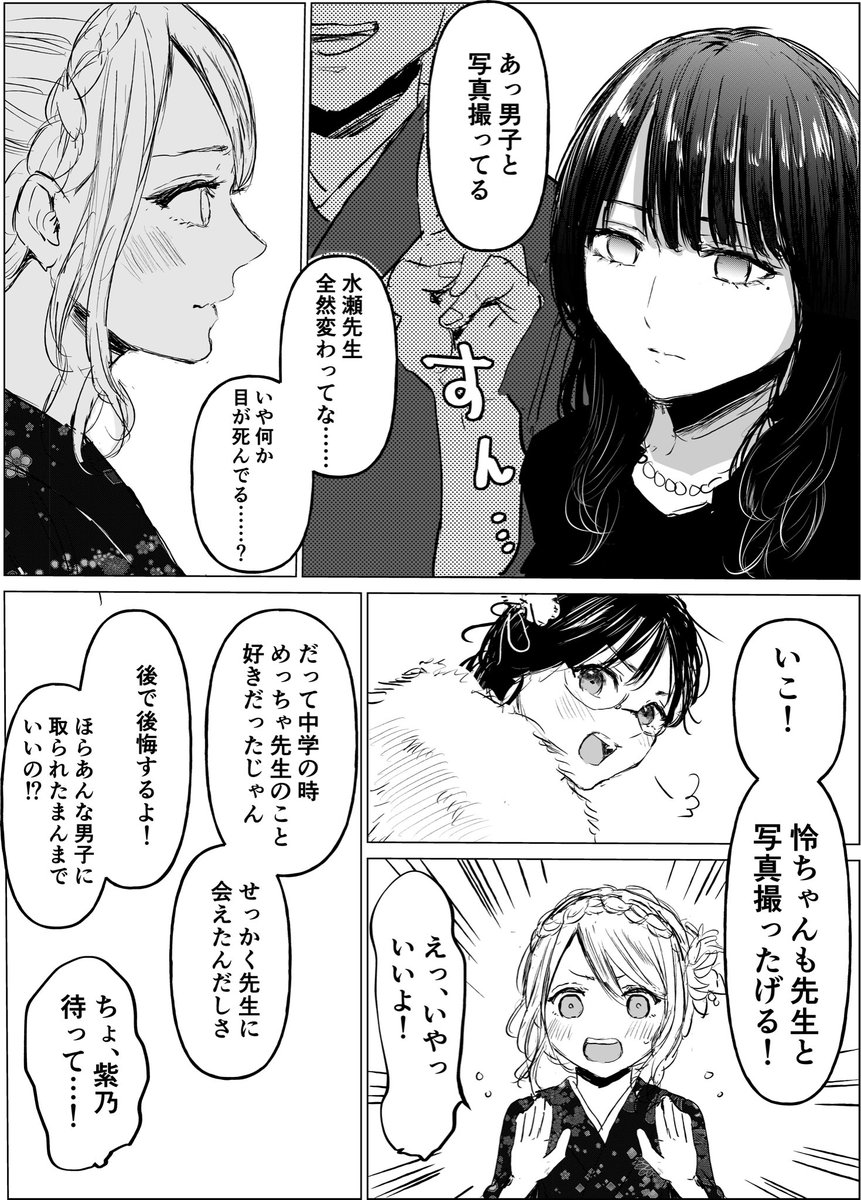 前回の続きです。セルフ同人ではこの人たち怜ちゃんが高校生になったら付き合ってる設定なので…