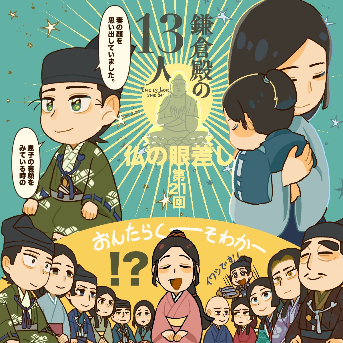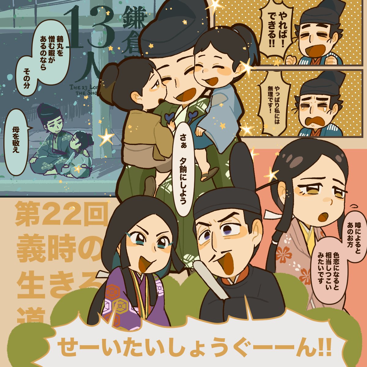 お手伝いさんがいるとはいえ孤児十数人育てながら金剛に嫡男の教育を施すシンパパ小四郎…ちゃんと愛を受け育つ金剛と鶴丸に泣けてくる。こんな優しいパパ見てたら黒執権義時に反発したくもなるし、反発しても絶対父には嫌われないという自信のある子に育つよね
