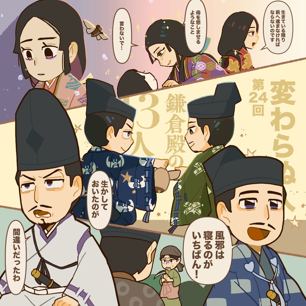 時政を追放する決意をした義時は鬼気迫る勢いだったけどいざ今生の別となった時、伊豆の小四郎が顔を出すの本当に泣く。義時の服がとうとう真っ黒に…メインビジュアルの生き生きしてる2代執権なんていなかったんだ… #殿絵 twitter.com/kanokiwa/statu…
