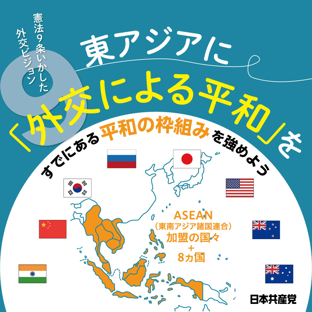 ASEANは「東アジアサミット」(日米中ロも参加)の強化、東アジア規模の友好協力条約を提唱。分断と対抗でなく、包括的な平和の外交こそ、9条を持つ日本がやるべき仕事です。