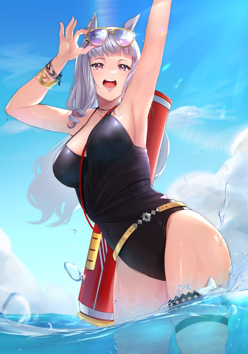 【水着ゴルシG1勝利演出!】 水着ゴールドシップのG1勝利時ポーズです! いやそれ水鉄砲じゃないんか😂