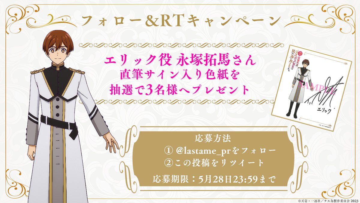 4日目は、エリック役・ #永塚拓馬 さんの直筆サイン入り色紙を抽選で3名様にプレゼント🎁