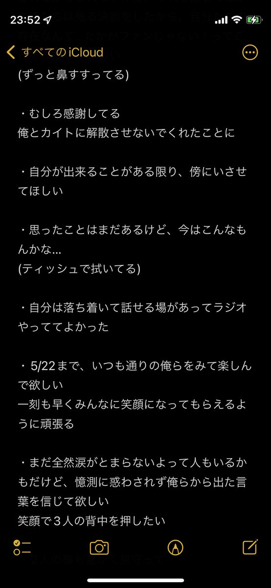 「いろんな憶測に惑わされず俺らから出た言葉を信じてまっすぐ受け止めてもらえればと思います」っていう言葉守りたい