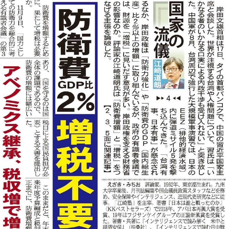 岸田政権は「防衛費のGDP比2%以上の増額」に取り組んでいますが、財源を「増税」に見いだす方向です