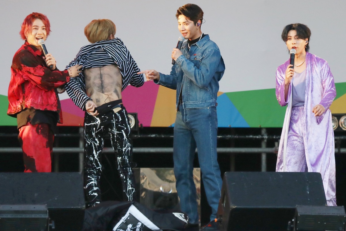 OWV、万博公園ライブで太陽の塔に興奮! 浦野秀太は背中で“黒い太陽”表現(ほか写真あり)