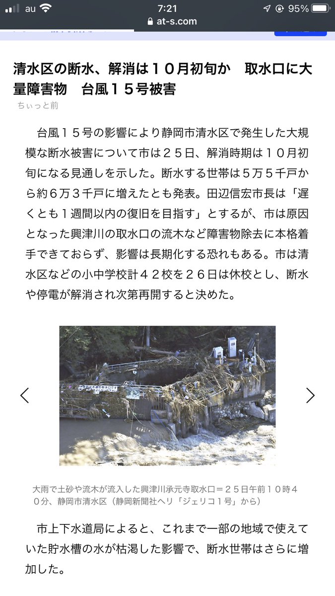静岡市清水区が断水で大変なことになってるのに静岡県の川勝知事が自衛隊に災害派遣しないと地元民が激怒「全国での報道が少なく給水車は4時間待ち、水や食料が不足してる」9月25日時点の被害状況 #清水区 #台風15号 matomebu.com/news/shimizu20…