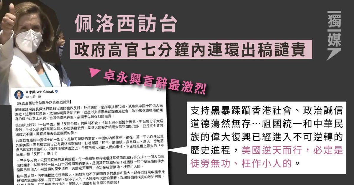 美國眾議院議長佩洛西成功訪台離台後,中共隨即通報台人涉台獨分裂活動被捕。